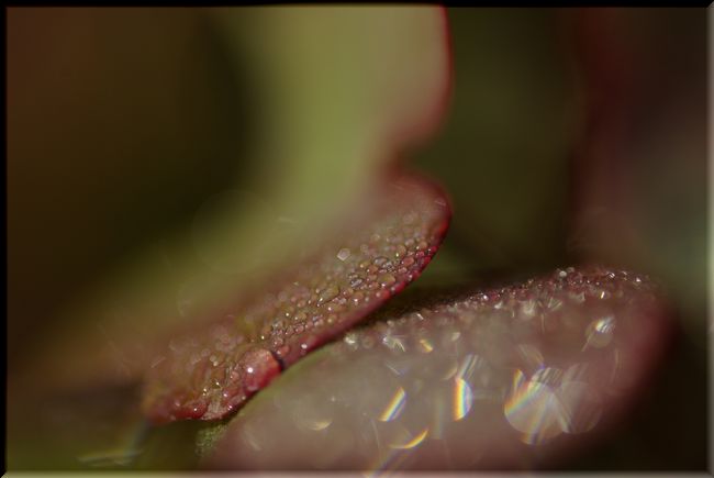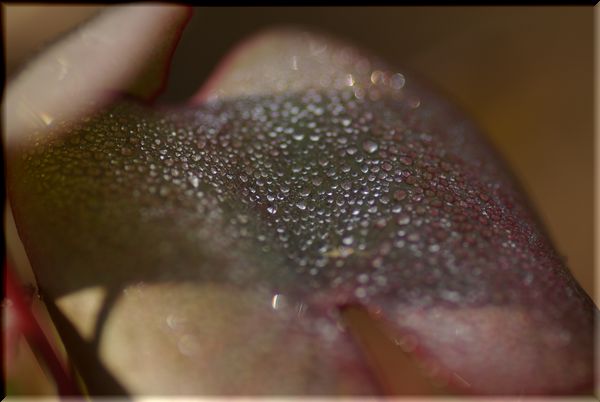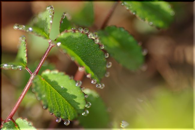 葉っぱの先っちょに、行儀よく並んでる水玉ちゃん・・・。