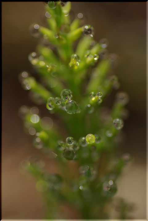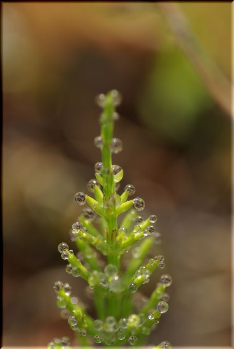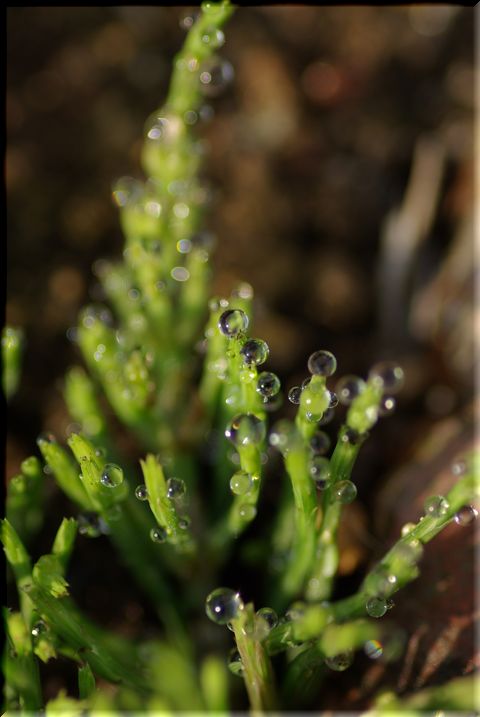 厄介者のスギナも、こんなにキレイな水玉をくっつけてますよ!