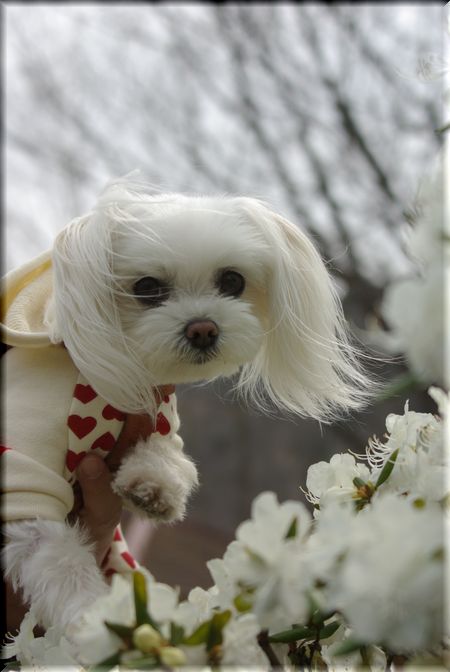枝が垂れ下がっているので、花越しのマミも撮れちゃいました♪