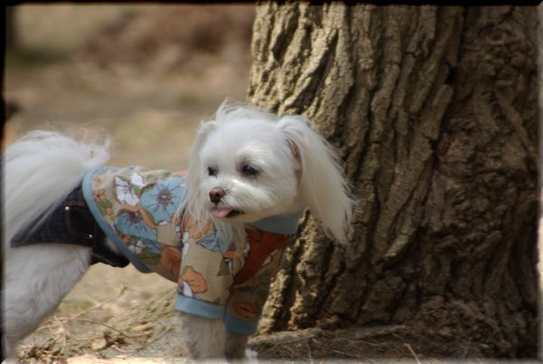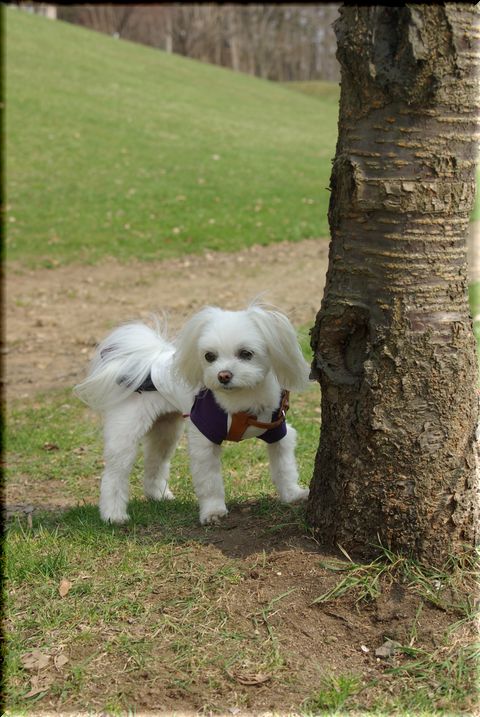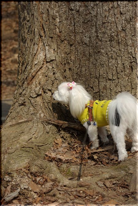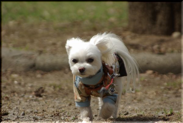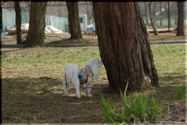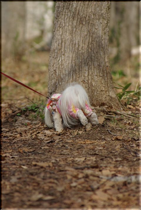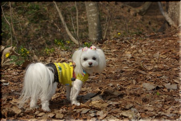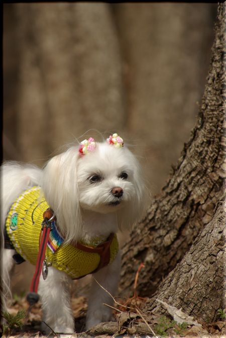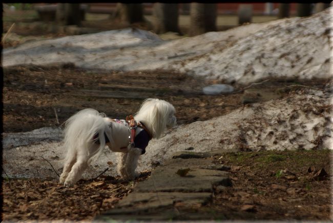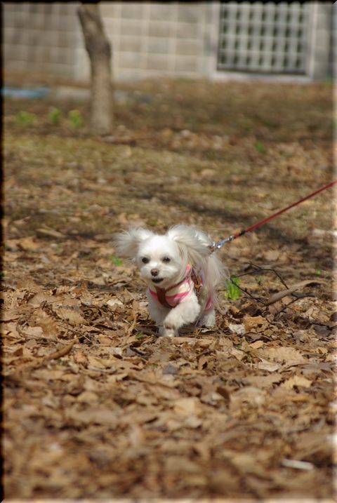 今日も暖かい陽気に誘われて、マミと公園散歩へ出かけました。