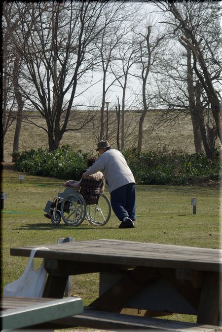 公園には、お母さんがお父さんの車椅子を押して来ていたのですが、