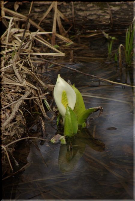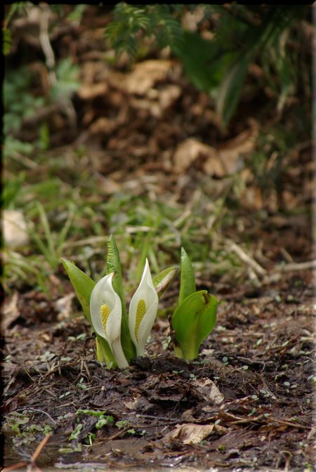 森の出口で、もう咲き出していたエゾエンゴサクの可憐な花に癒されながら、