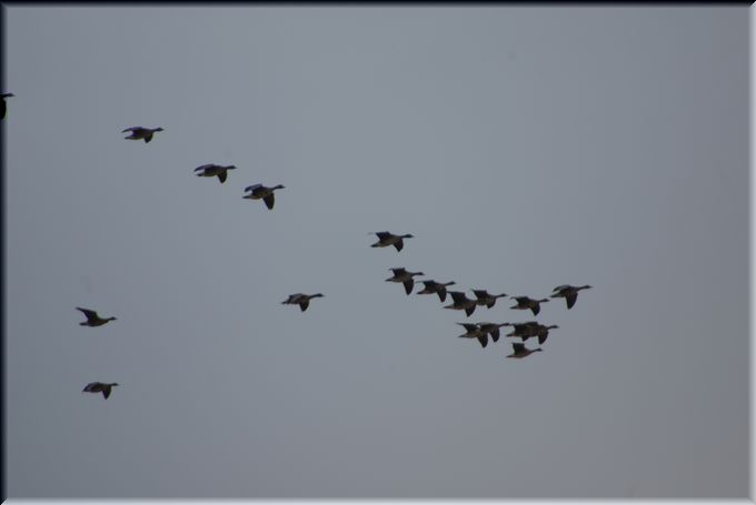 あちこちから少しずつ、お早いお帰りのマガンさん達が飛んできました。