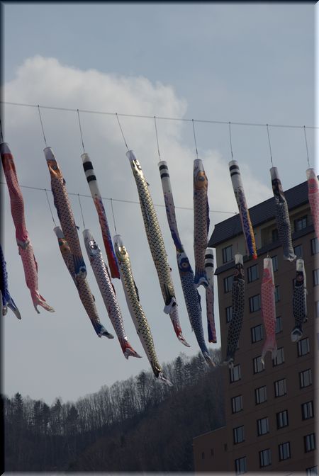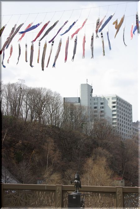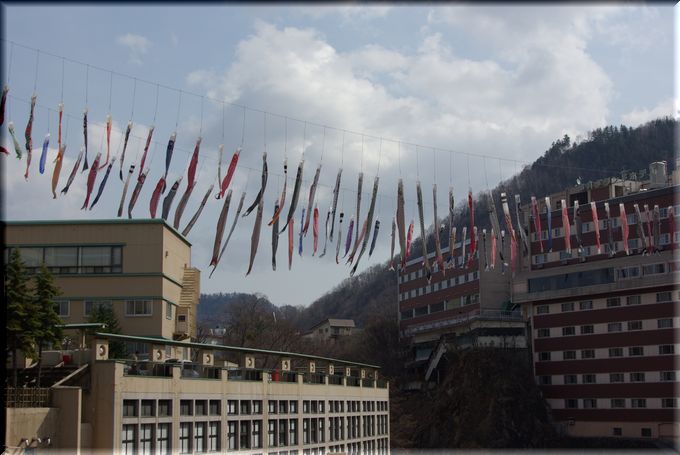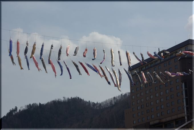 約350匹の鯉のぼりが泳ぐ定山渓温泉、
