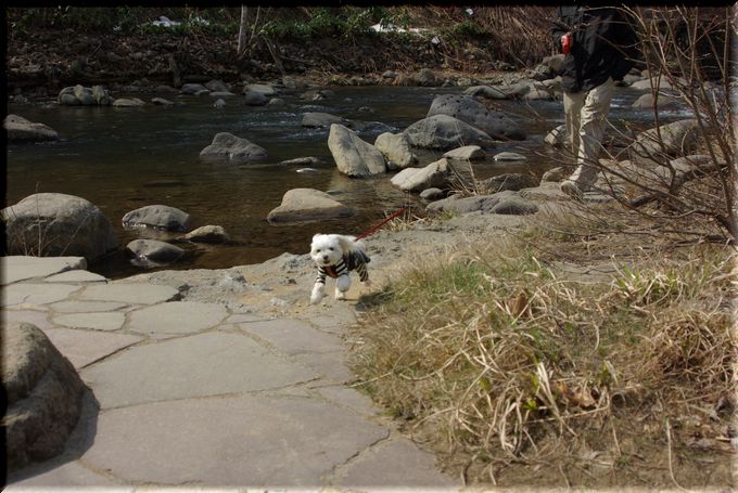 やっと雪の消えた公園で、のんびりとお散歩です。