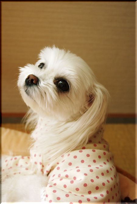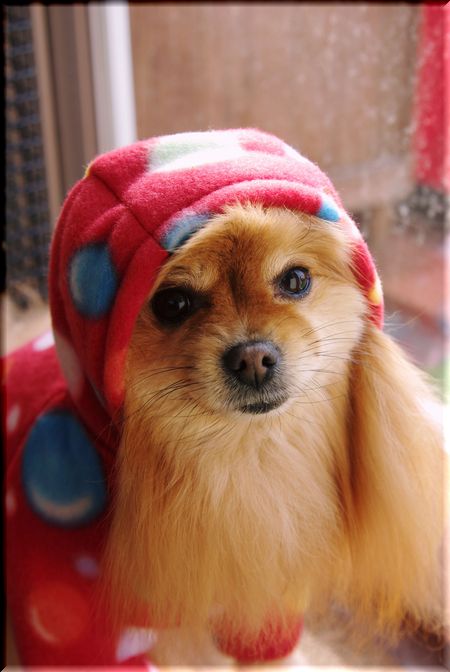 ママにフードを被せられると・・・固まりました("⌒∇⌒")