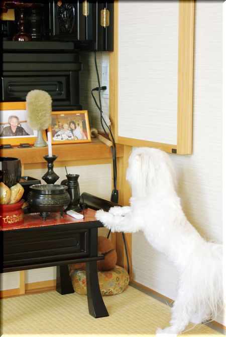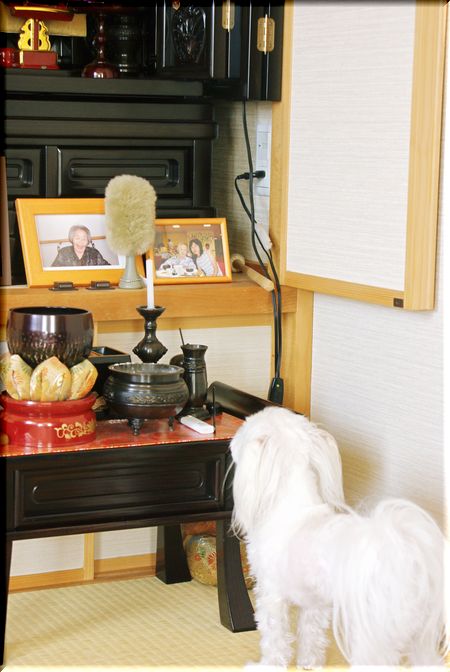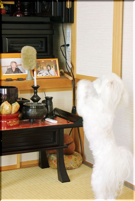 仏壇の前で、じ~~っと見つめてます・・・。