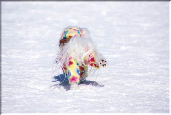 途中で立ち止まって、雪玉を齧りだしました(^-^;)