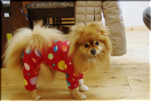 ポッチママに頼まれていた、ポッチンのお散歩用のカバーオールをお届けしてきました。
