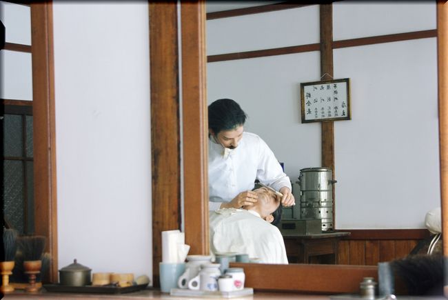 「山本理髪店」の中では、髭剃りの真っ最中なのでした。