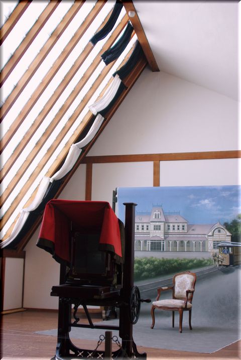 写真館のスタジオ。