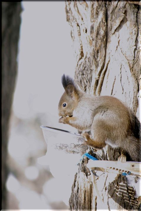 小鳥もリスの餌を狙ってやってくるので、時折小鳥を威嚇しながら