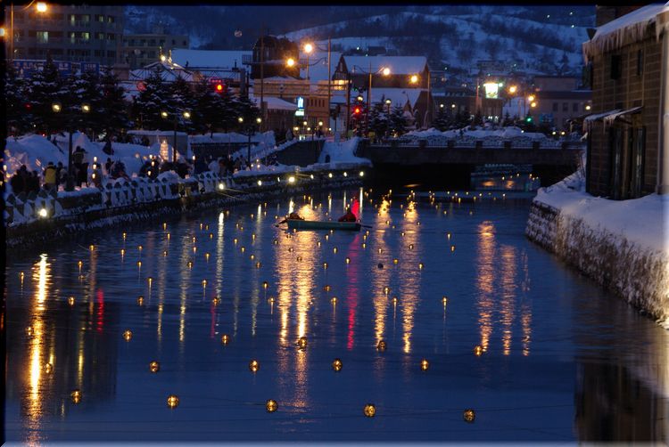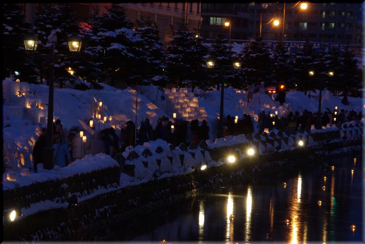 運河沿いの雪あかりの会場では、
