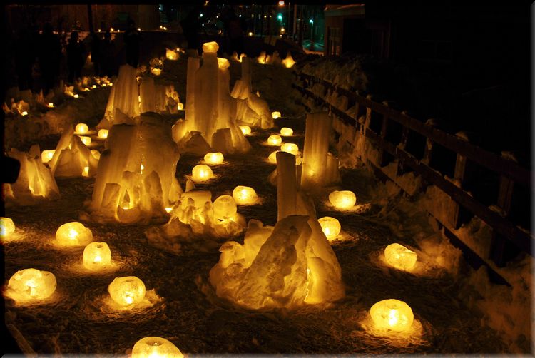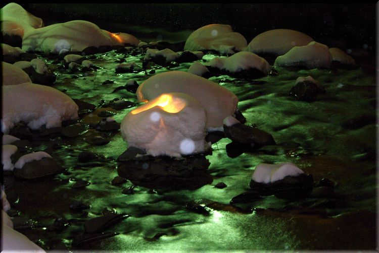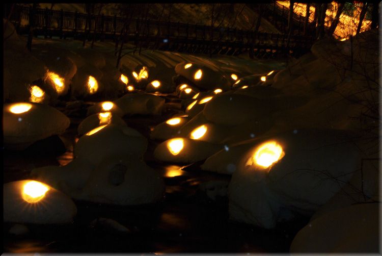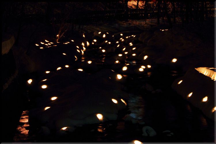 こちらは川の中に灯された雪あかりなんです。
