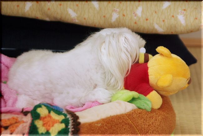 プーさん枕にふて寝中・・・(笑)