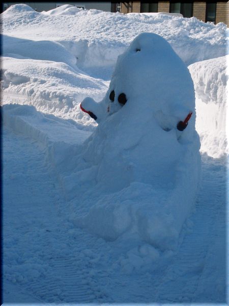 ハンサムなスノーマンも、なんだか不思議な物体になってます・・・。