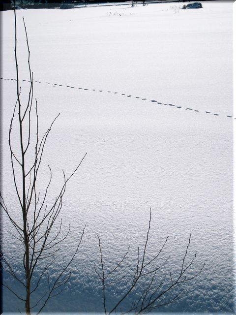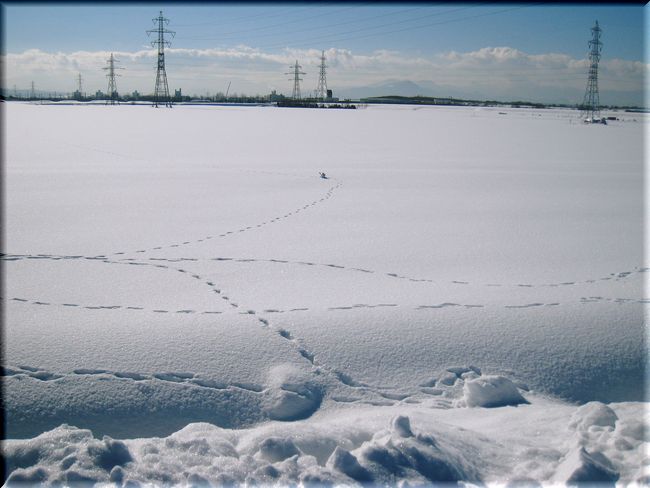 どこかのワンちゃんが、雪原の上を自由に歩き回ったようで・・・。