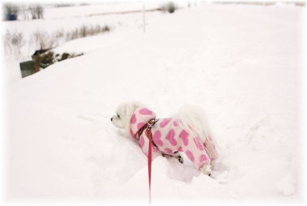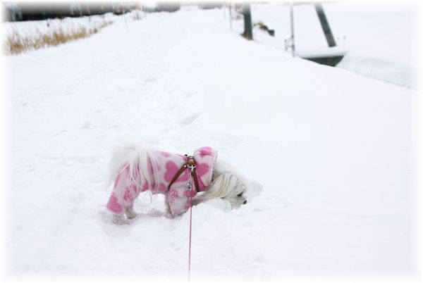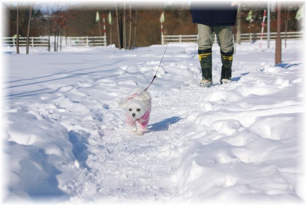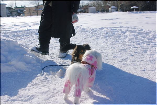 雪が降り出さないうちに、マミとご近所散歩へ。