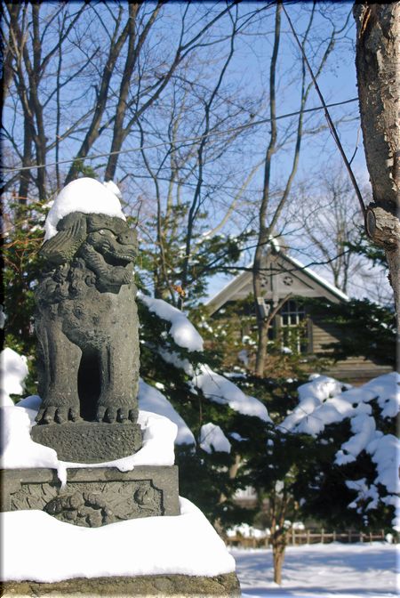 神社の杜に、レトロな建物がよく似合います。
