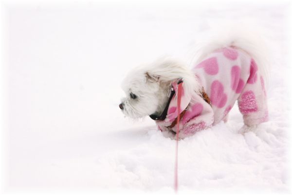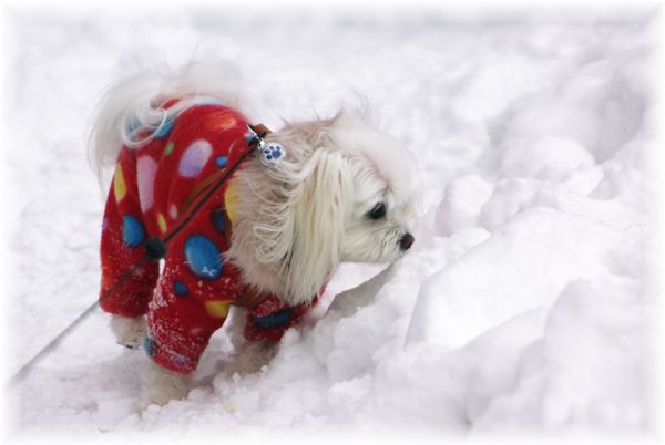 散歩をしていると、急に雪が激しく降りだしたので、