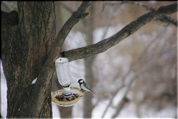 心優しい人が、冬の間も小鳥達が餌を食べられるようにと、