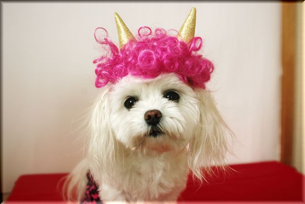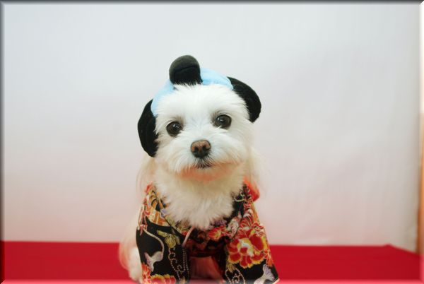 白と黒のぶちワンコになったマミ。