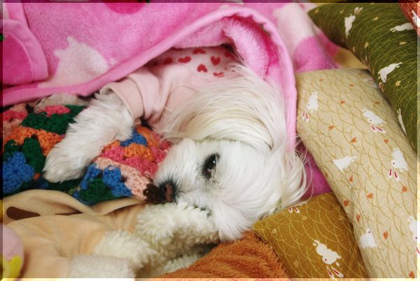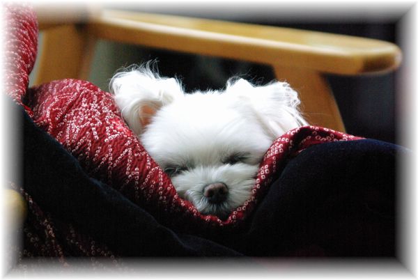 今朝は、ちゃんちゃんこにくるまって・・・。