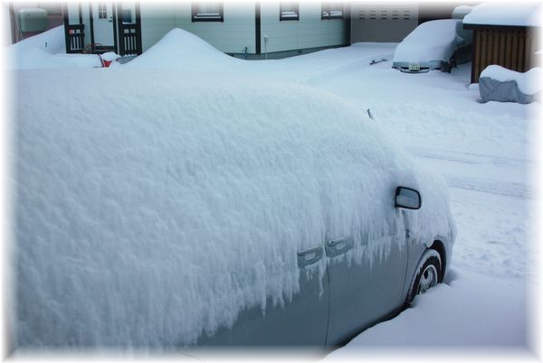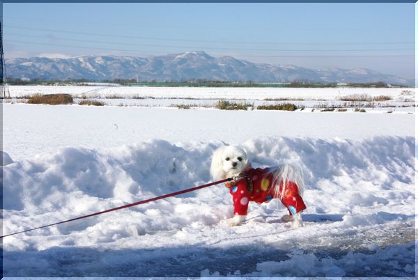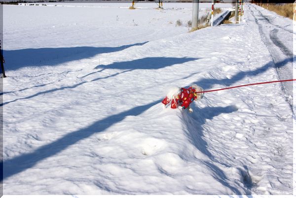 タップリ雪が降り、牧草地へと続く道の除雪車がまだ入っておらず、