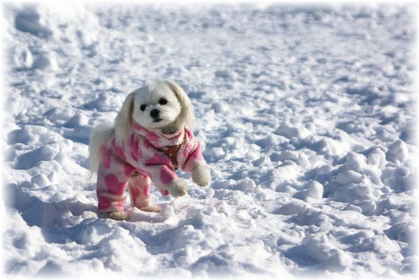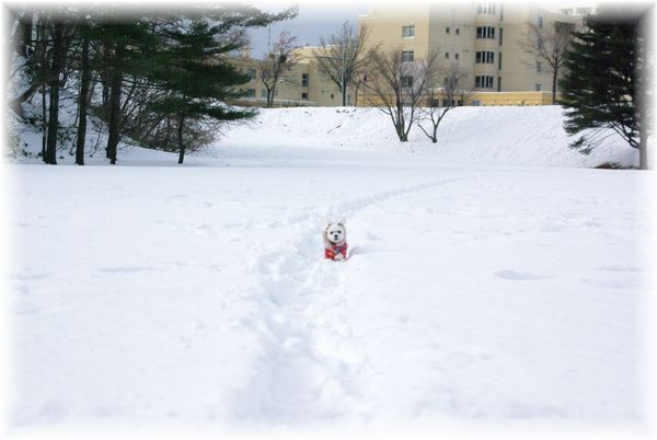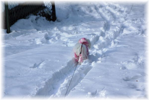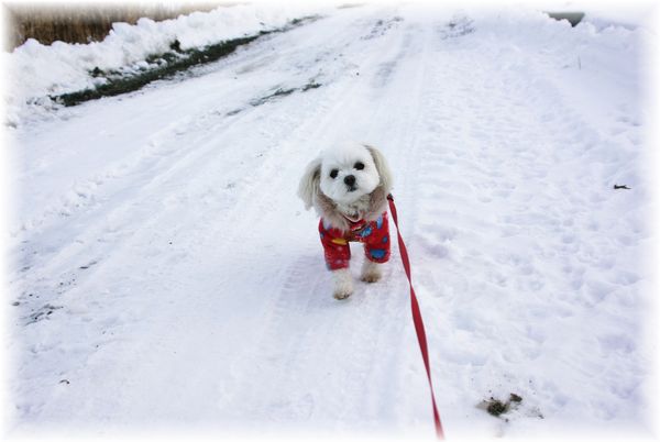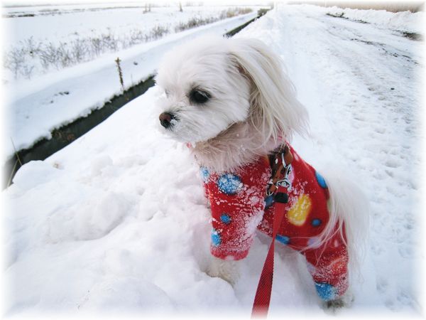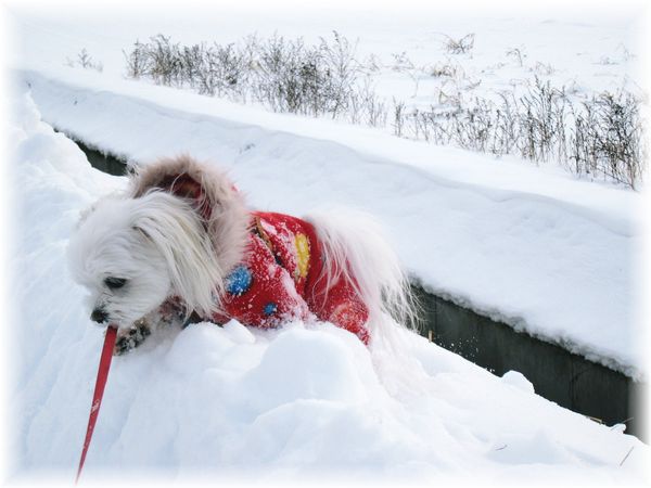 今日も体中雪だらけにして、やんちゃ娘の散歩が終わりました。