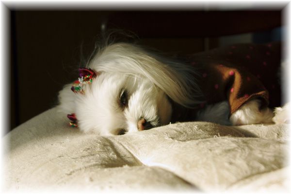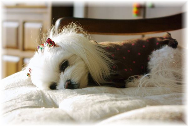 トリミング&撮影会を終えて、すっかりお疲れのマミ・・・。