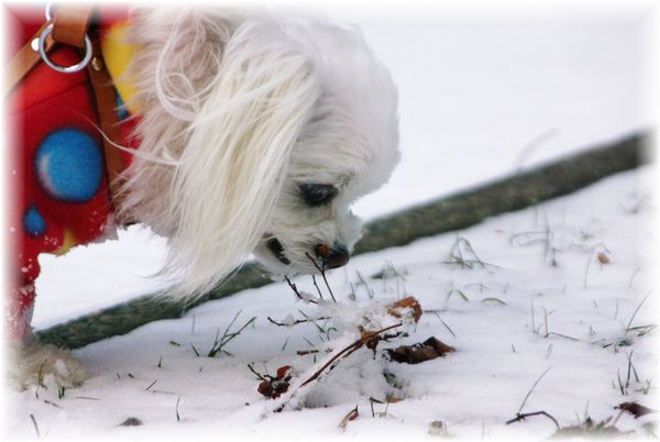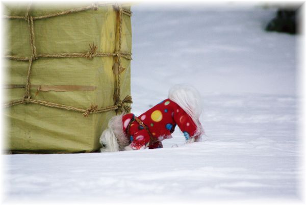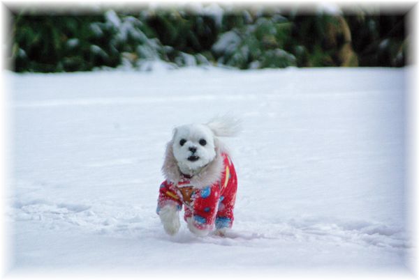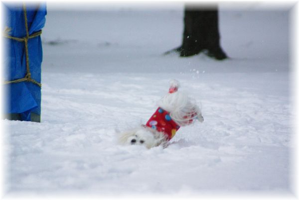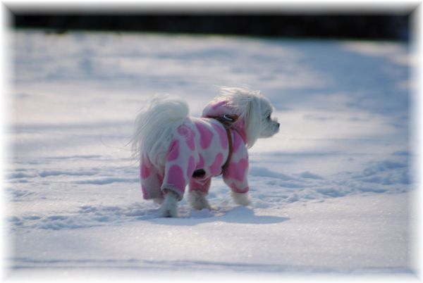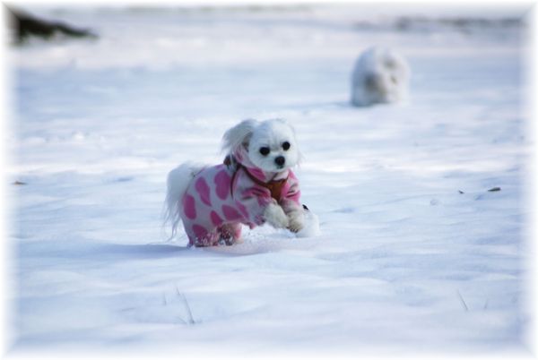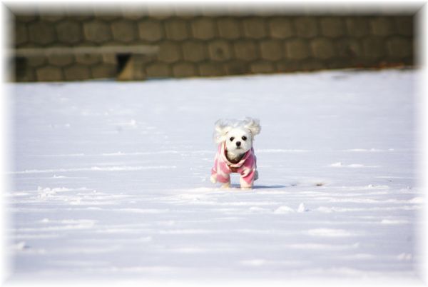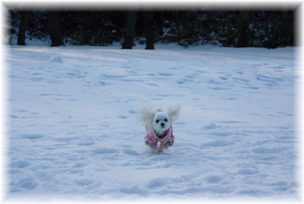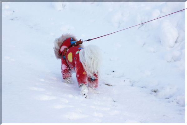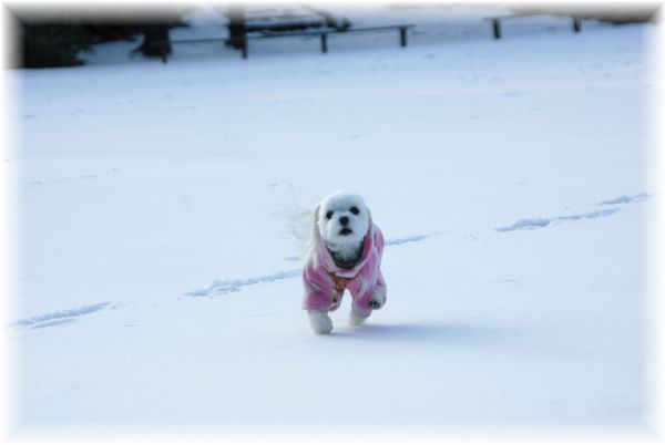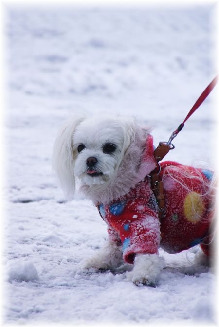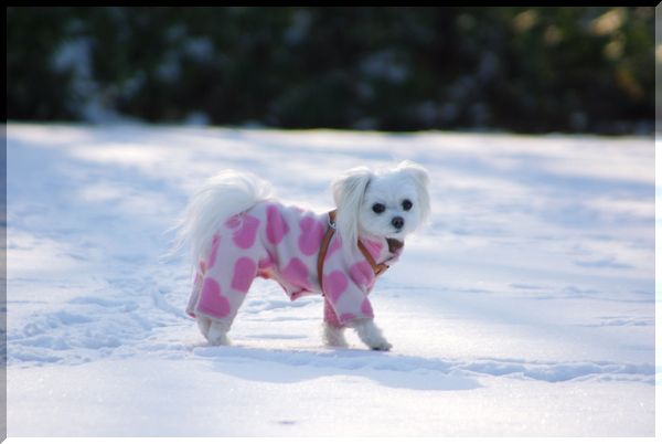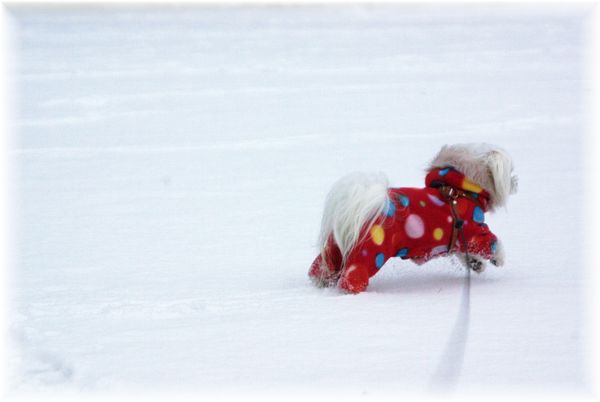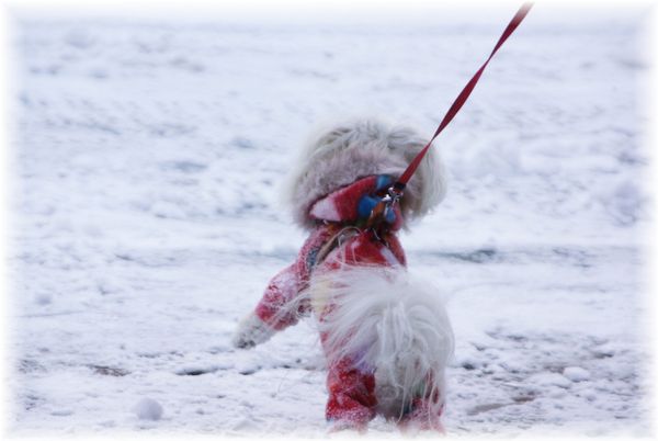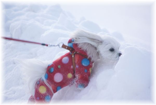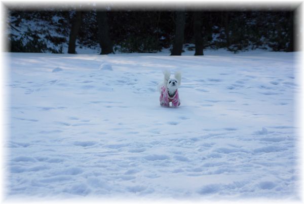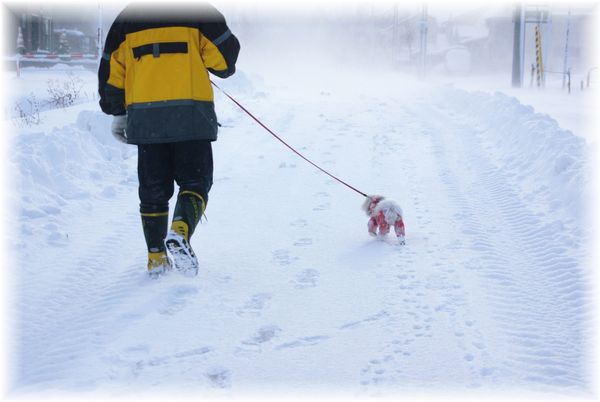 雪かきを終えた父が、マミを散歩に連れ出したので、