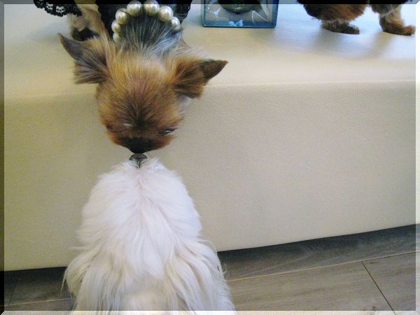 こうしてクリスマスパーティーは、白ワン3匹・茶ワン3匹で始まったのです・・・。