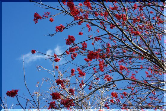 ナナカマドの真っ赤な実は、冬の間の小鳥達の大切な食料。